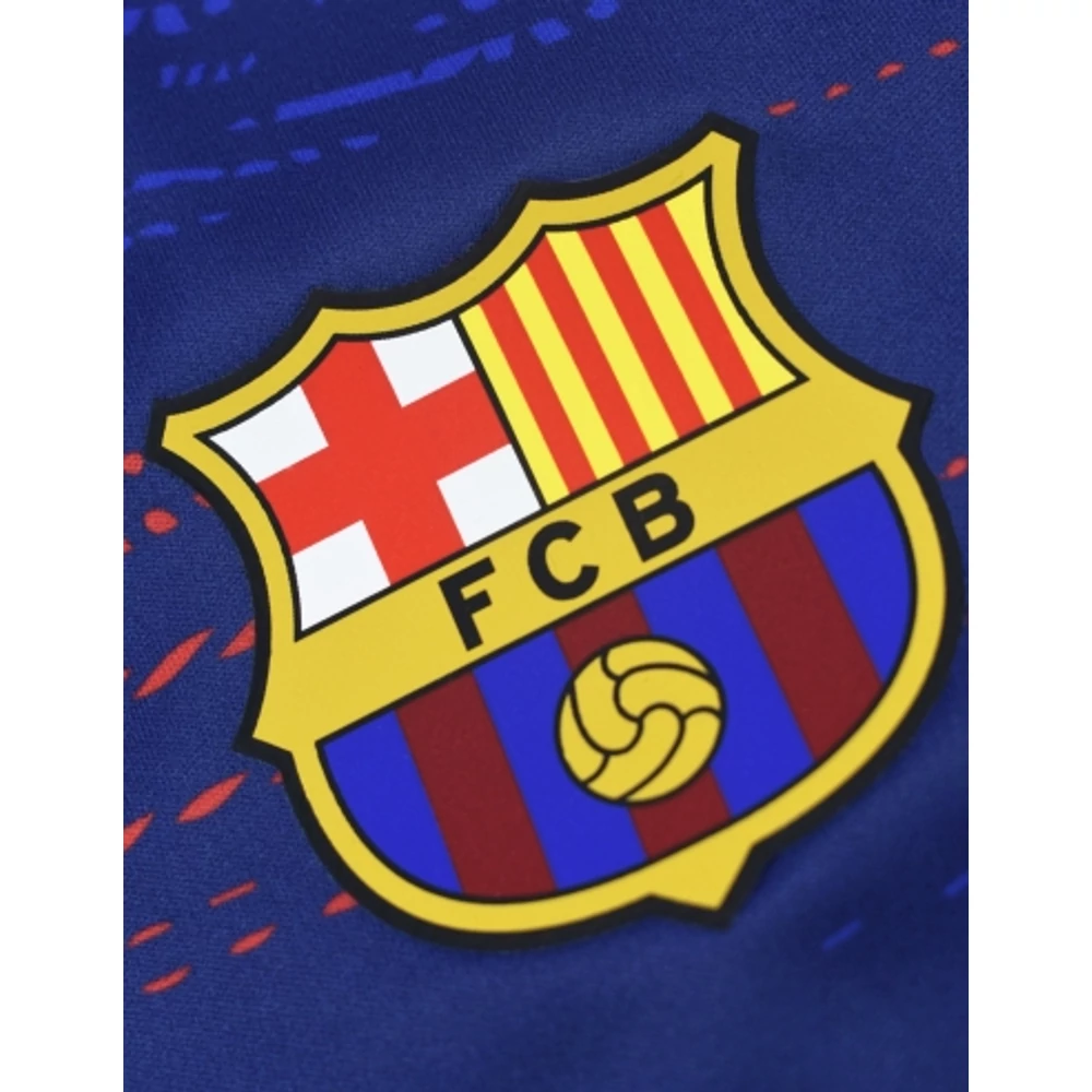Edzz és szurkolj stílusosan ebben a dinamikus mintázatú, sötétkék FC Barcelona edzőmezben! A könnyű, légáteresztő technikai anyag kényelmes viseletet biztosít, miközben a modern, piros-kék csíkozás vibráló megjelenést kölcsönöz. A mellkason büszkén díszeleg a Barcelona címere, amely minden helyzetben egyértelművé teszi, melyik csapatért dobog a szíved. Ruganyos, gyorsan száradó anyaga ideális edzésekhez, de akár hétköznapi viseletként is megállja a helyét. Hivatalos, licenszelt FC Barcelona termék.