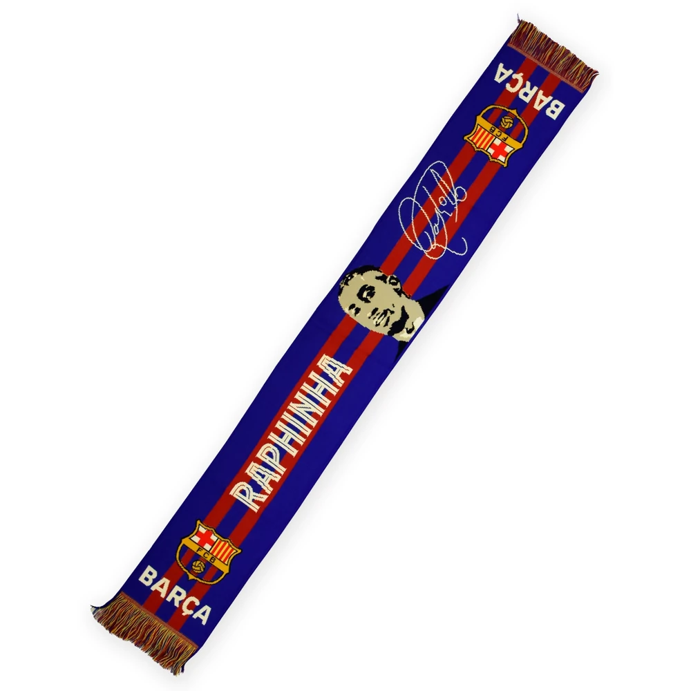 A Barcelona 2025-26-os idényre tervezett hazai gránátvörös-kék sáljának játékosokra tervezett különkiadása Raphinha nevével, arcával és aláírásával. A mérete 140x20 cm-es, egy oldalon kötött sál minden részlettel. A sálat a két végén több színű, látványos rojtozások zárják le és mivel kötött anyag, erős, tartós szurkolói darab is. Tökéletes választás szurkoláshoz és meccsnézésekhez!