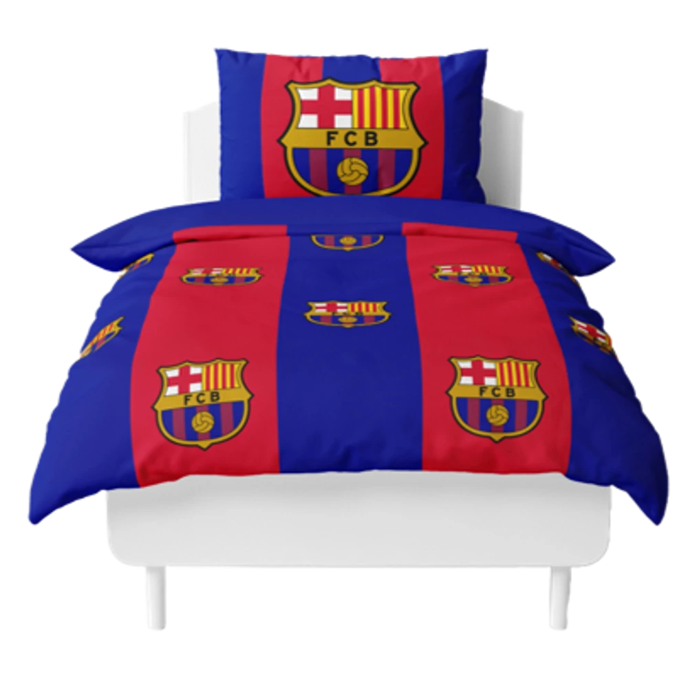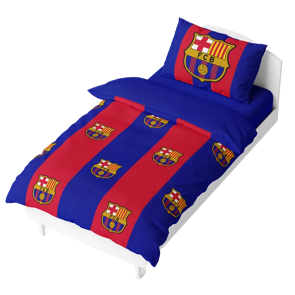 A legszebb Barcelona ágyneműt keresed? Gránátvörös-kék sávok, rajtuk kicsiben a Barcelona címere. Az ágynemű ráadásul két oldalas, a másik oldala kék színű. Hivatalos FC Barcelona termék.