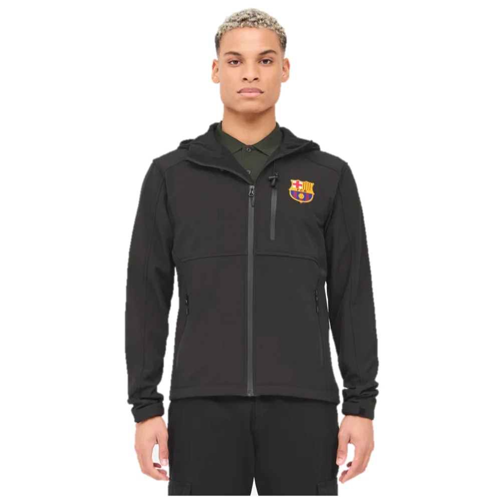 Kiváló minőségű Barçás softshell kabát. Nem kimondott téli kabát, de egy jó pulcsival remekül bírja a téli időt is, kimagaslóan jól a szelet, kisebb esőkkel sincs gondja. A külső része rendkívül erős, a kabát mégis nagyon könnyű. Kiválóan lélegző technikai ruházat, magas gallérral, állítható és lecipzározható kapucnival, behúzó zsinóros alsó szegéllyel. A zsebek zipzárasok, a mandzsetták tépőzárral állíthatók. Hivatalos, licenszelt FC Barcelona termék..