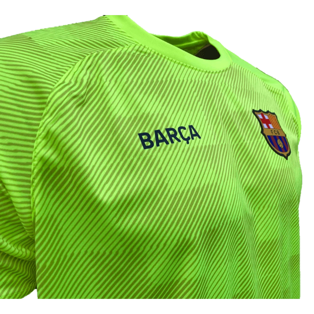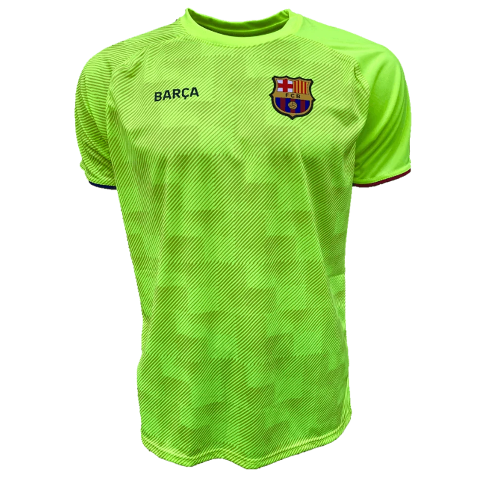 Ha szereted a látványos színeket, és szeretsz jó technikai pólókat használni akár bármilyen edzéshez, vagy egyébként is, nem érdemes tovább keresned. Hivatalos FC Barcelona edzőmez látványos neon sárga színben, fekete háttér díszítésekkel, elöl FC Barcelona címerrel és Barça felirattal, az újjak végén gránátvörös illetve kék díszítő csíkokkal. Első osztályú technikai ruházat: ruganyos, könnyű, légáteresztő, jó nedvesség elvezető tulajdonságokkal. Hivatalos, licenszelt FC Barcelona termék.