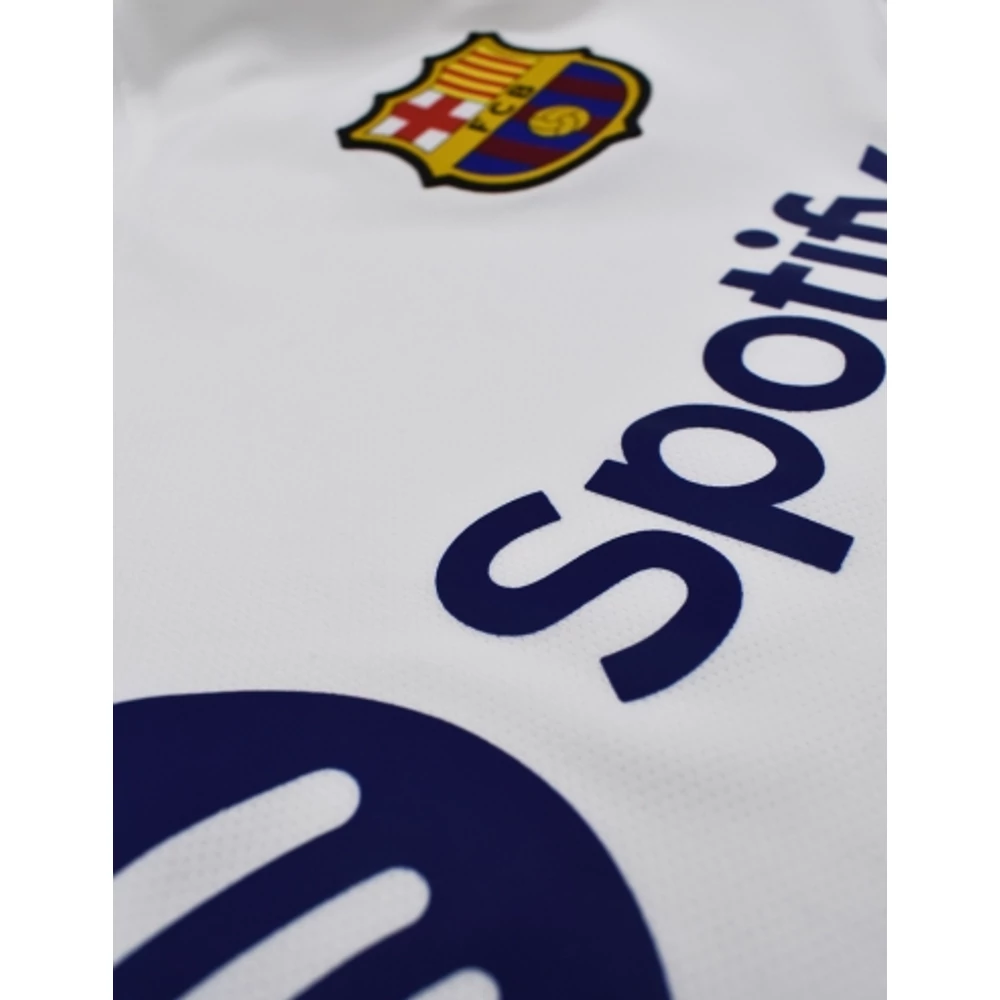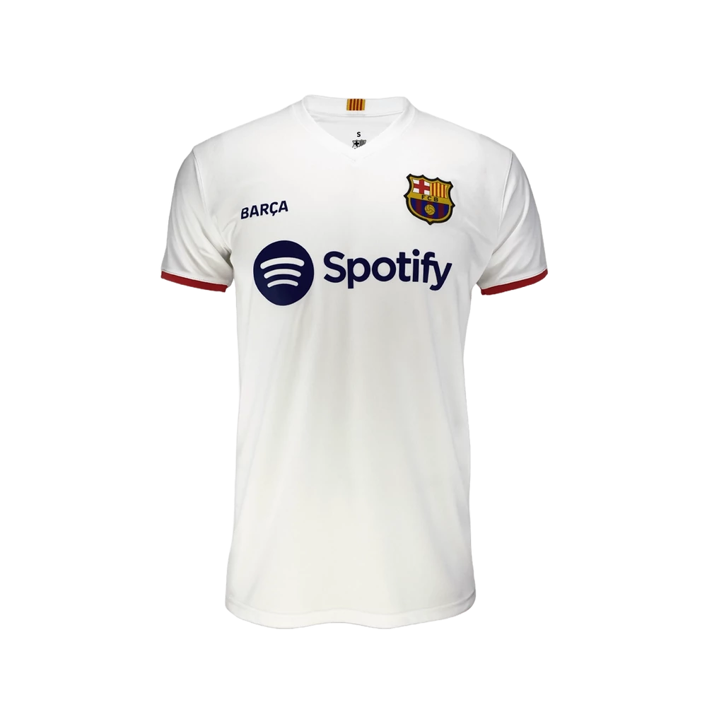 Az FC Barcelona 2023-2024-es szezonra készült második számú prémium szurkolói meze. Tökéletes minőségű, top kategóriás, Spanyolországban készült szurkolói mez, melyben szurkolhatsz a csapat meccsein, de akár magad is játszhatsz benne. Az idei évben második számú mez fő színe a fehér, ami gránátvörös és kék díszítéseket kapott. Az elülső oldalán található a Barcelona címere, Barça felirat és a szponzor neve és logója.