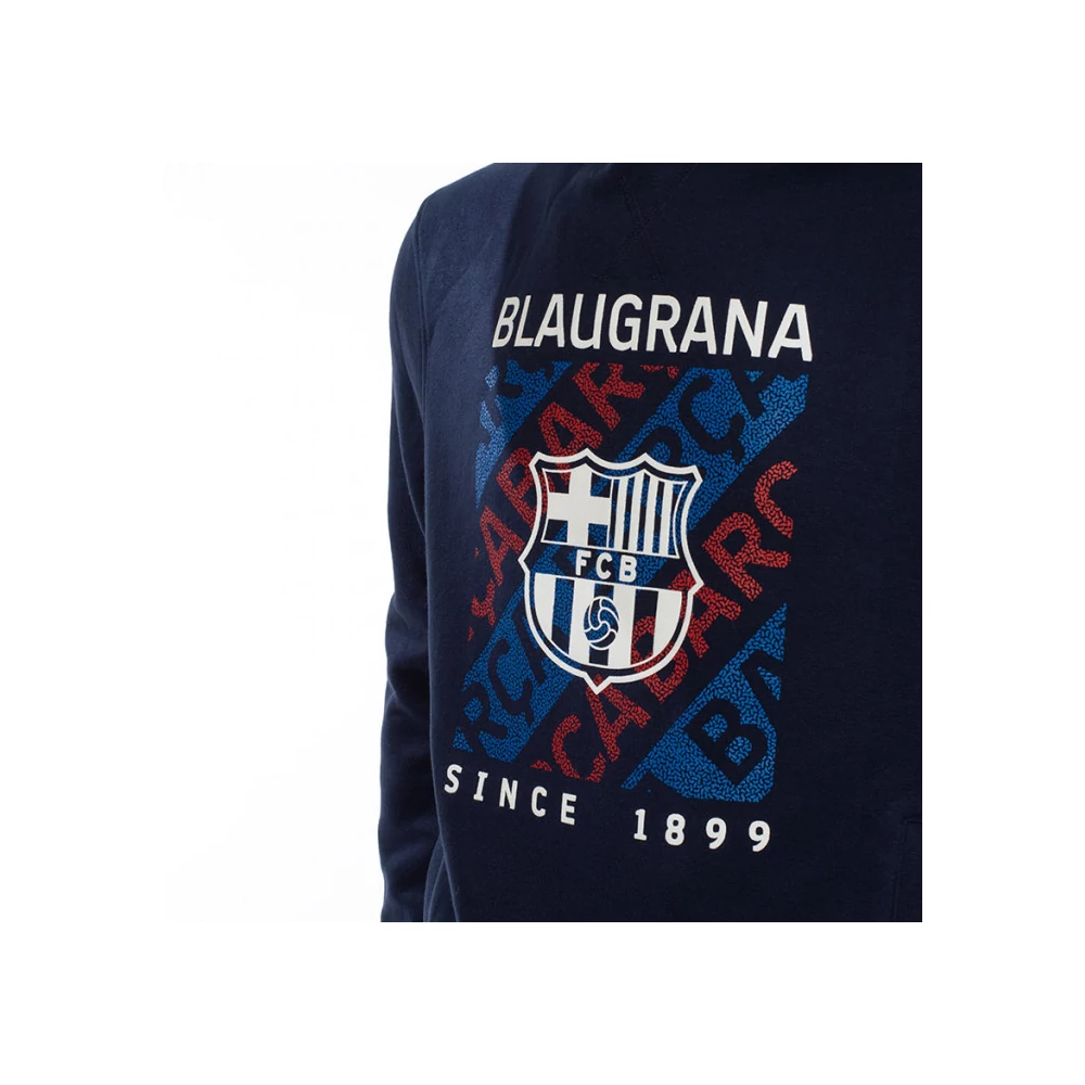 Sötétkék, címeres Barcelona kapucnis pulóver - XL